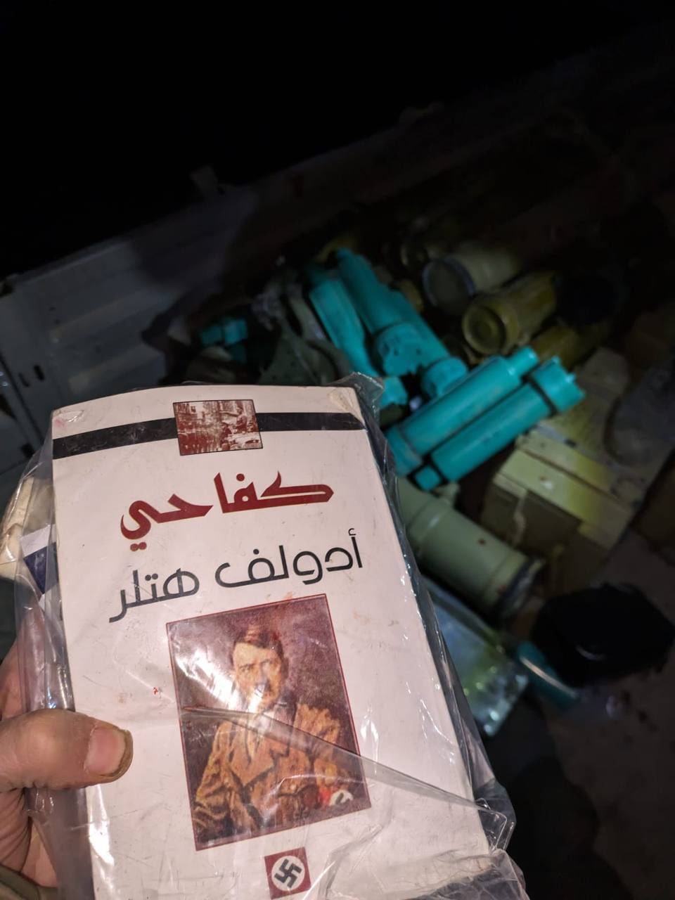 IDF soldiers in Gaza found copies of Adolf Hitler's "Mein Kampf" in Arabic used by Hamas. [28] Dec 20, 2023. X Arch.)
